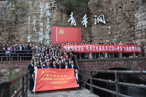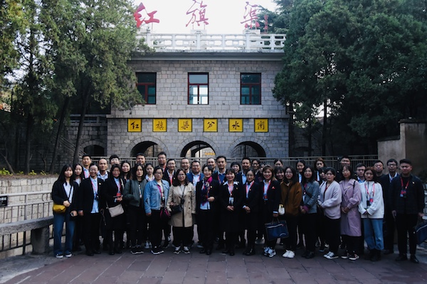 为庆祝中华人民共和国成立70周年,将“不忘初心、牢记使命”主题教育引向深入;为深入学习习近平新时代中国特色社会主义思想和贯彻党的十九大精神;为进一步加强万象城党建工作,提升师生党员的党性修养,10月19日至20日,万象城100名师生党员代表在党委书记李国强、副书记董学力、纪委书记李赞、工会主席张彪的带领下,奔赴红旗渠开展为期两天的“传承红色基因,牢记初心使命”主题教育活动。红旗渠干部学院魏来同志主持开班仪式。