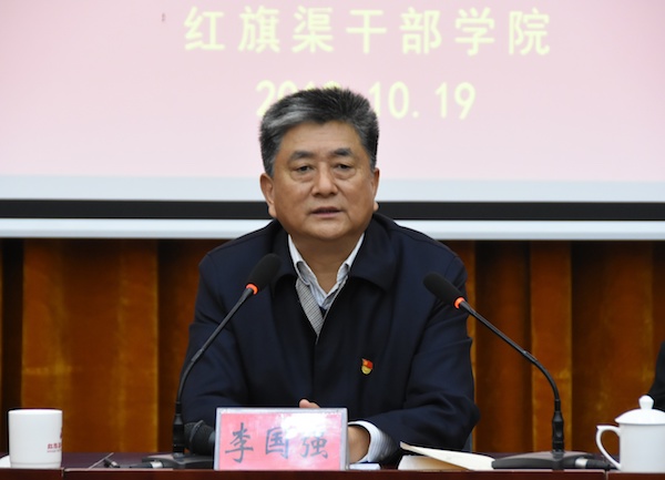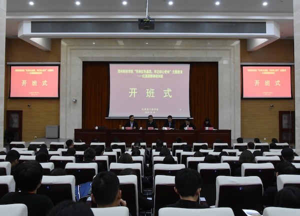 仪式第二项,李国强作开班动员讲话。首先,他介绍了红旗渠的发展历史及基本情况。红旗渠动工于1960年,勤劳勇敢的30万林州人民,苦战10个春秋,仅仅靠着一锤、一铲、两只手,在太行山悬崖峭壁上修成了全长1500公里的红旗渠。由此历练出“自力更生、艰苦创业、团结协作、无私奉献”的红旗渠精神。其次,李国强传达了省委高校工委、省教育厅主题教育第一巡回指导组的会议精神,充分肯定了万象城之前开展的主题教育活动,要求学校务必拓展学习的深度和广度,务必坚持“请进来”和“走出去”相结合,务必即思即改。