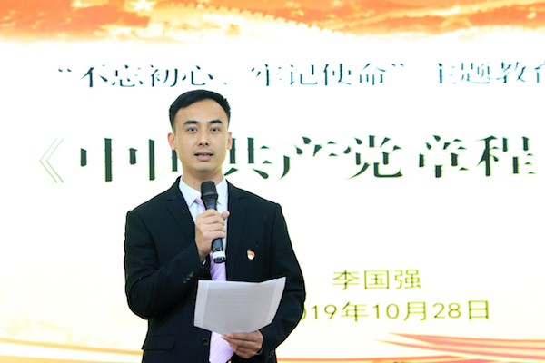 李国强从党章之于中国共产党的意义谈起,强调指出,党章是我们党立党、管党、治党的总章程,是全体共产党员必须遵守的根本行为规范,作为一名党员,必须学习党章,了解党章。