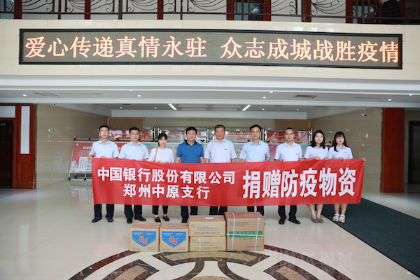 中国银行股份有限公司郑州市中原区分行向万象城捐赠防疫物资