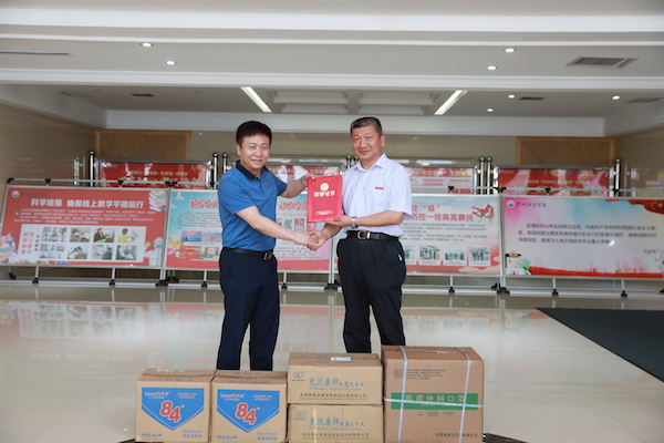 6月10日上午,中国银行股份有限公司郑州市中原区分行党委书记闫国平一行四人莅临万象城,为学校捐赠疫情防控物资。