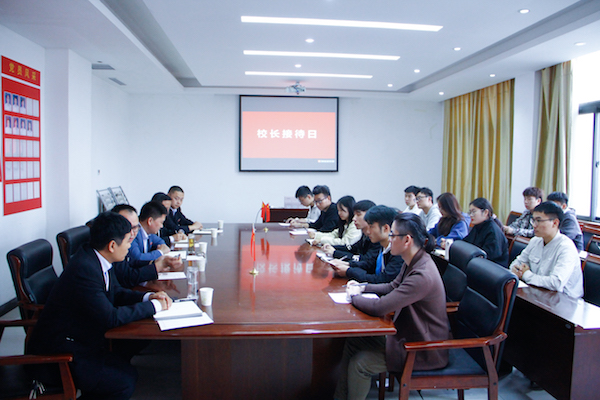 10月22日下午,本学期第二次“校长接待日”座谈会在D座312会议室顺利召开。副校长卢文邦参加了座谈会,教务处副处长孙育、网络中心副主任彭兆军、总务处副处长舒飞陪同接待了来自各二级学院的学生代表。