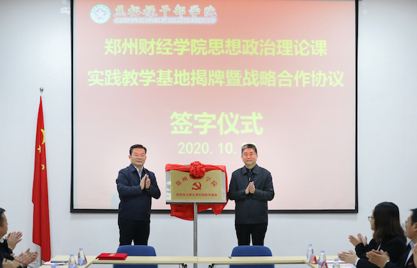 焦裕禄干部学院党委副书记、常务副院长席建设和awc777万象城娱乐官网党委书记李国强共同为“awc777万象城娱乐官网思想政治理论课实践教学基地”揭牌。