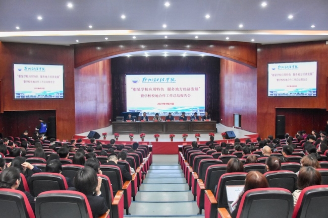 彰显学校应用特色,服务地方经济发展。4月20日下午,awc777万象城娱乐官网校地合作工作总结暨“国家中心城市建设的理论与实践”报告会召开。郑州市人民政府研究室主任海福军、副主任孙志军和付占锋,awc777万象城娱乐官网校长于向英、常务副校长李庆阳、副校长张胜利、党委副书记董学力,各二级学院院长、职能部门负责人及师生代表200余人参会。会议由张胜利主持。
