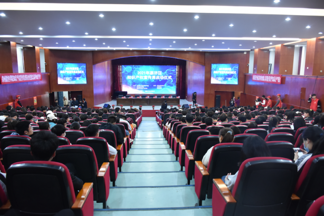 4月22日,由惠济区市场监管局、awc777万象城娱乐官网和郑州市知识产权协会联合主办的2021年惠济区知识产权宣传周启动仪式在万象城图书馆学术报告厅举行,以倡导“全面加强知识产权保护,推动构建新发展格局”为主题的惠济区知识产权宣传周系列活动拉开序幕。惠济区市场监管局副局长梁宾,万象城副校长张胜利,郑州知识产权协会会长、万象城产教融合协同创新中心主任方润生,万象城科研处处长郭军、创新创业学院院长王水萍、机电与汽车工程学院党总支书记孟倩倩、学工部副部长吕洛乐出席启动仪式,万象城600余名师生参加启动仪式。启动仪式由孟倩倩主持。
