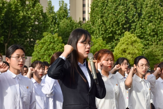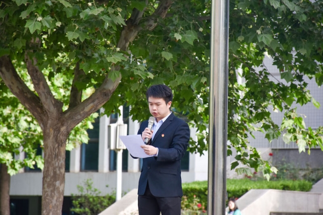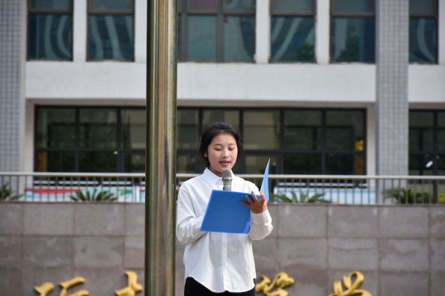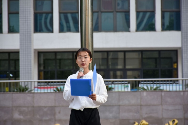 教育学院2019级小学教育4班刘士琪作为老团员代表向新团员传递了共青团精神,并诚挚邀请每一位新团员共同拼搏奋进。
