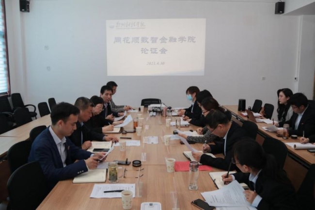 4月30日,同花顺数智金融学院论证会在行政楼F楼508会议室举行,常务副校长李庆阳、副校长张胜利、工会主席张彪和相关专家出席会议,对同花顺数智金融学院进行论证,论证会由金融学院党总支书记杨贵仓主持。