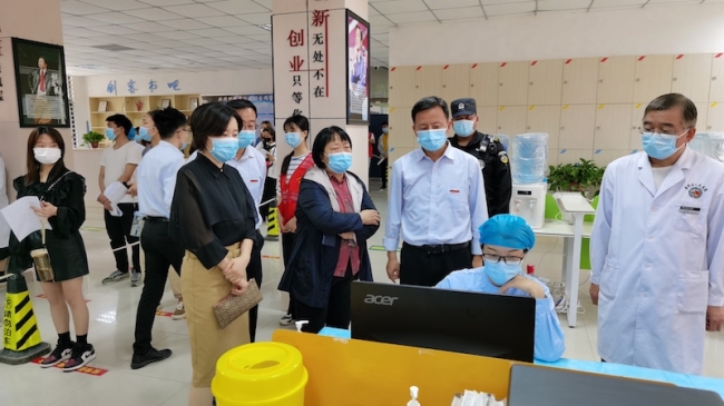 校长于向英、副校长卢文邦、工会主席张彪等校领导先后深入现场,了解接种工作流程安排、应急措施、后勤保障等情况,慰问现场疫苗接种学生。要求相关部门相互配合,耐心服务,确保万象城疫苗接种工作圆满完成。