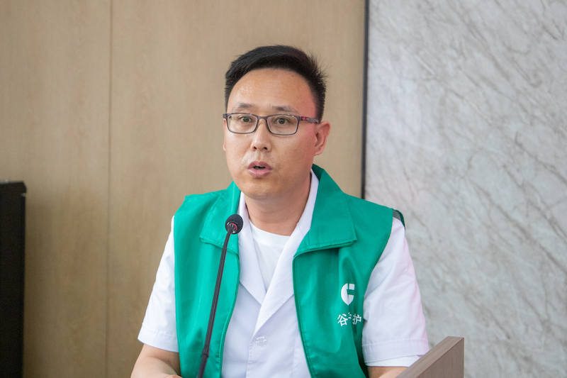 “谷子益护”志愿服务队的武朝阳医生详细讲解了参加公益活动时出现突发情况的应急处理方法,他真诚地表示“谷子益护”会携手志愿者共同走进社区、走进家庭,为志愿者健康保驾护航。