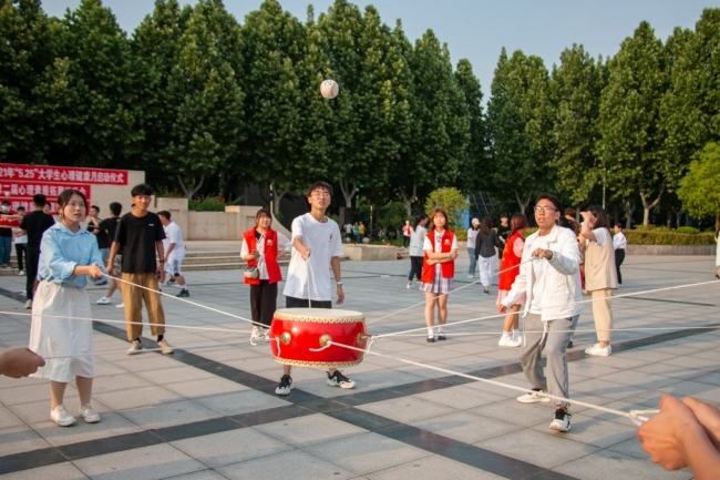 启动仪式结束后,万象城第二届心理素质拓展运动会正式开始,各学院学生积极参与击鼓颠球、穿越呼啦圈、单腿跑火车、无敌风火轮等游戏,同学们在游戏中感受团体的凝聚力,在一片片欢声笑语中体会团结协作的力量。