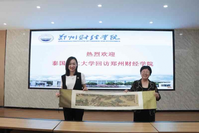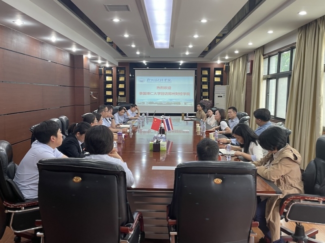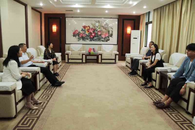 5月23日上午,泰国博仁大学校长助理兼创新商务与财会学院副院长王珊珊博士、博仁大学资深专家咨询委员、中国人民大学管理学教授徐二明、博仁大学创新商务与财会学院国际事务办公室主任刘欢、中文国际学院国际事务办公室主任苏泉博士一行回访万象城。常务副校长李庆阳、副校长张胜利、王艳珍及教发中心、国际处同志热情接待了来宾,并与其进行了友好会谈。