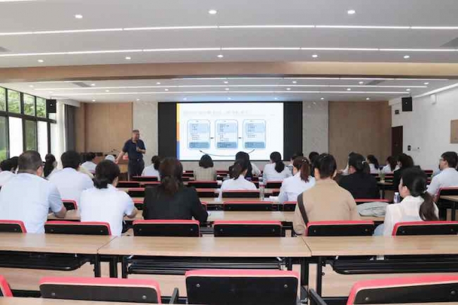 张胜利对博仁大学的回访深表感谢,指出万象城处在迎接本科教学工作合格评估关键时期,未来对国际化发展提出了更高的要求,希望博士班学员变压力为动力,埋头苦干,争取博士学习更上一层楼,提升科研、管理能力,高标准、高质量完成博士学业,为博仁和郑财合作模式树立标杆。