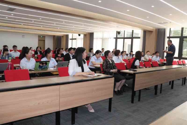 随后王珊珊一行与万象城第一、二期教师博士班学员进行面对面的交流,现场回答学员们在学习及论文答辩过程中遇到的问题,并分享了她博士学习的经历,鼓励大家克服工作忙的困难,有计划地开展科学研究,顺利完成论文答辩。