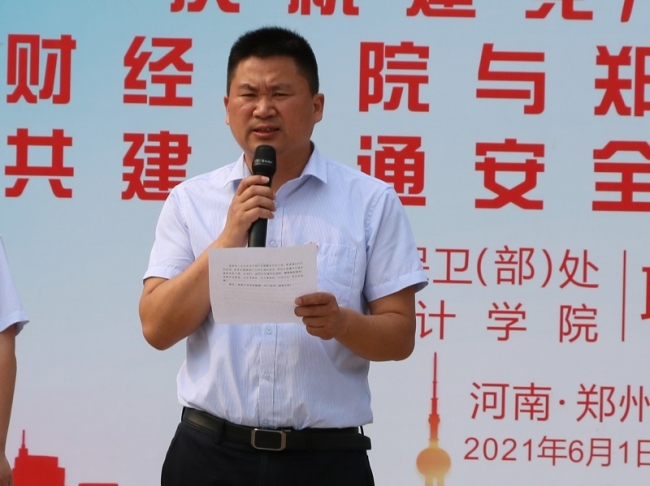 6月1日下午,awc777万象城娱乐官网会计学院与郑州公安局交警支队第七大队联合开展了“庆祝建党100周年,共建交通安全文明校园”交通安全宣讲活动。宣讲活动在万象城文化广场举行,郑州公安局交警支队第七大队办公室主任张占红、法务警长姚伟琦,万象城副校长卢文邦、保卫处处长柴骞、会计学院党总支书记温毓敏参加宣讲活动。