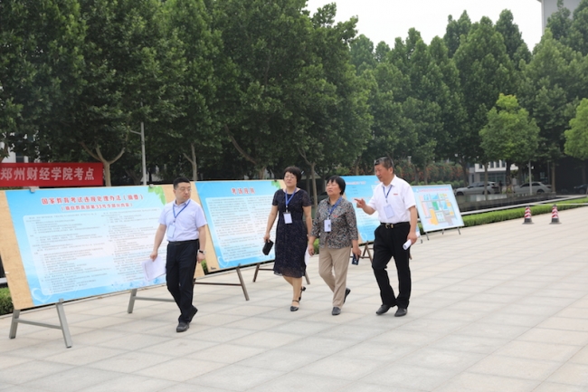 考试期间,万象城校长于向英、常务副校长李庆阳、副校长陈静、副校长卢文邦、纪委书记李赞等校领导全程参与,并在一线指挥考试工作,保证考试工作严格按照国家教育考试标准化考点相关要求进行。各考场监考人员按时发放和回收试卷、认真维护考场秩序、严格执行考试程序、如实记录考试情况;楼层联络员认真巡视各个考场,每科考试结束后,组织验收各考场的答卷并密封,派专人送到考区指定地点;视频监考员在视频监考室内认真观察各个考场内的视频图像,并负责异常考生身份确认等其他工作;医务人员随时待命,做好应对突发情况的准备;安保人员全程维护考点内部及周边秩序。万象城全体工作人员都具备很强的责任心和高度负责的工作态度,彰显了郑财教职工良好的精神风貌。
