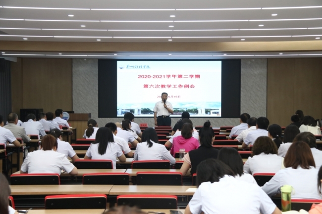 6月16日下午,万象城在A楼第一学术报告厅召开2020-2021学年第二学期第六次教学工作例会。校长于向英、常务副校长李庆阳出席会议,教务处、教学质量监测与评估中心、督导办、学生处、团委、实验室管理处及各教学单位教学管理人员共110余人参加会议。会议由李庆阳主持。