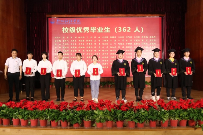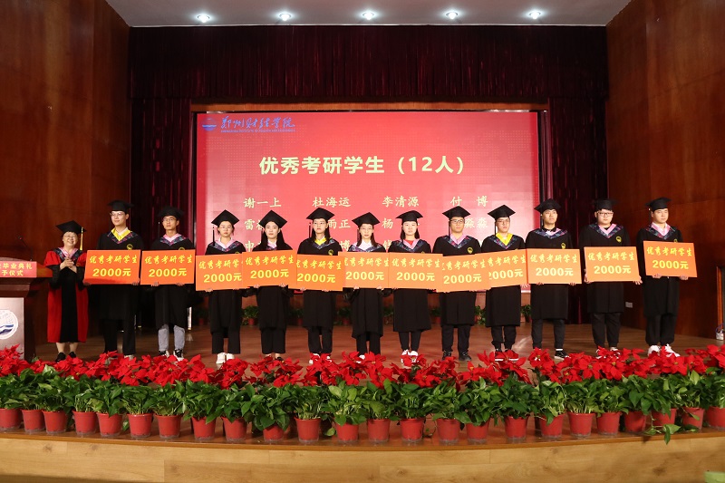 在颁奖环节中,副校长张胜利为优秀考研学生颁奖;理事长牛钦民为校级优秀毕业生代表颁发荣誉证书;校党委书记李国强为省级优秀毕业生代表颁发荣誉证书。并向他们表示热烈的祝贺。