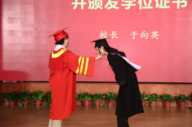 校长于向英为毕业生代表颁发学位证书