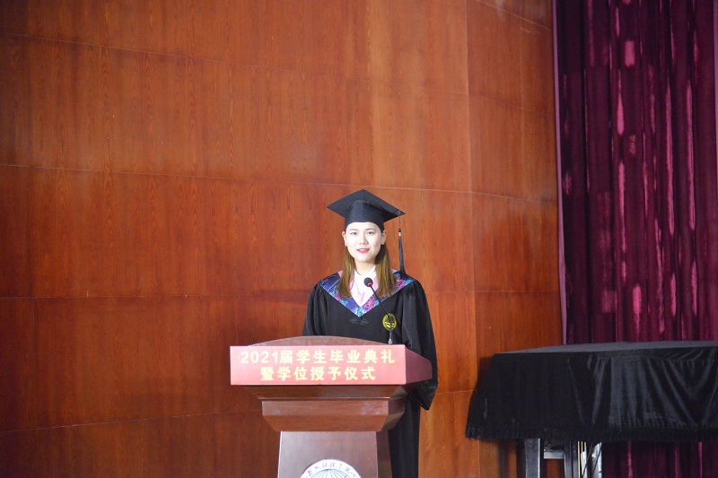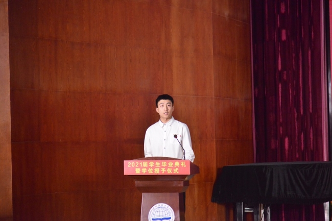 万象城在校生代表信息工程学院2019级软件工程本科4班胡玉林同学发言。他向全体毕业生送上真挚的祝贺,并代表所有在校生祝学长学姐们心想事成,今后一切顺利。