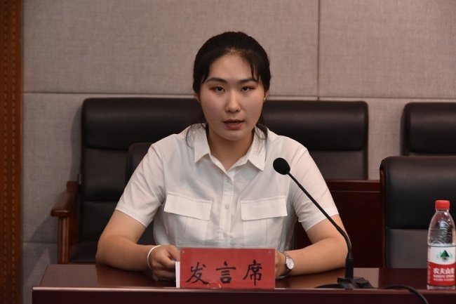 先进个人代表艺术设计学院辅导员李牧遥表达了在校风学风活动中的感悟体会,并表示会在思想上高度重视、理论上不断探索,积极实践,努力为学院、学校的建设发展贡献自己的一份力量。
