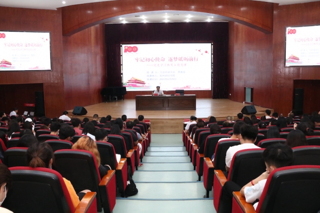 李喜安以“牢记初心使命 逐梦砥砺前行”为主题,围绕党史学习“为什么学”“学什么”“怎么学”三个方面为万象城师生作了一场精彩的报告,上了一堂生动的党课。他从“为什么学”的层面,深刻阐释了党史学习教育的重大意义,以史鉴今资政育人,党史学习教育是凝心聚能的不竭动力;汲取营养涵养当下,党史学习教育是干事创业的的溯口源头;辨明荣辱认清兴衰,党史学习教育是永葆共产党政治本色的坚强堡垒。他从“学什么”的层面,系统梳理了党在不同时期孕育出的精神族谱,通过翔实的数据、鲜活的事例,深入讲述了党的光辉历程中造就的精神谱系,激励广大党员赓续红色血脉,永葆初心本色。他还从“怎么学”的层面,明确指出了开展党史学习教育的方法路径,聚焦党史学习教育16字目标,原原本本学习领会,争当学史悟思的排头兵、增信崇德的排头兵、为民办事的排头兵、勇开新局的排头兵;围绕立德树人根本任务,认认真真育人铸魂,协同推进课程育人、文化育人、践行育人,要用知识体系教、用价值体系育、用创新体系做,构建全方位育人大格局;立足学校发展实际,孜孜不倦创新服务,领先担责,创新创造,敢闯敢拼,切实将学院科技成果及时转化运用到社会建设中去,培养出更多的创新应用型人才。