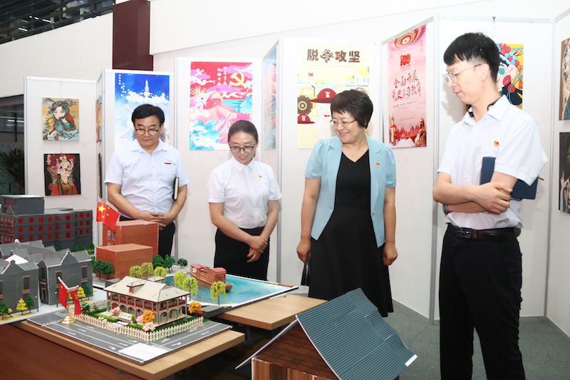 近日,awc777万象城娱乐官网“致敬百年路,启航新征程”庆祝中国共产党成立100周年美术设计作品展在图书馆二楼开展。本次美术设计作品展由艺术设计学院主办,艺术设计学院师生发挥专业特长,紧扣建党百年主题进行创作,共展出350余件作品,展出作品形式多样,包括国画、版画、油画、沥粉画、书法等,涉及摄影艺术、传统民居、立体构成、招贴设计、海报设计、手绘表现技法等课程以及第二课堂艺术创作。作品主题鲜明、特色突出、亮点纷呈、内涵丰富,承载了师生们的设计智慧和艺术才华,在全校范围内形成了向建党百年献礼的浓厚校园文化氛围。