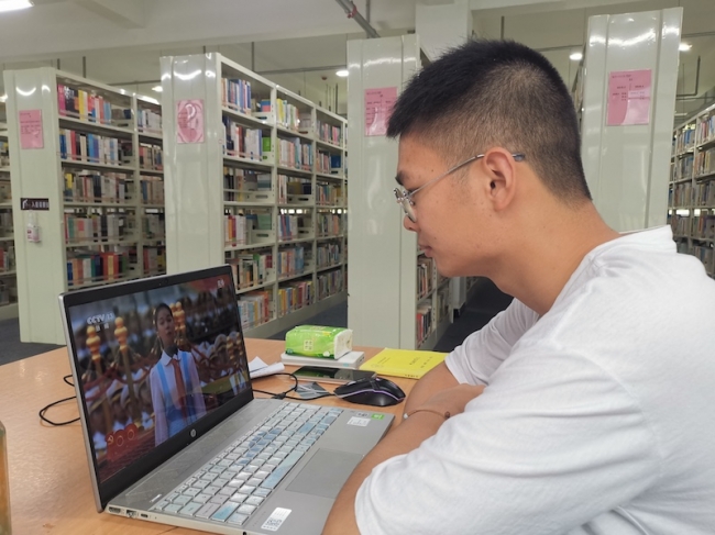 学生收听收看庆祝中国共产党成立100周年大会