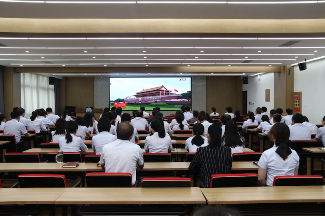 校党政领导班子成员、科级及以上干部、党委职能部门全体人员观看庆祝中国共产党成立100周年大会