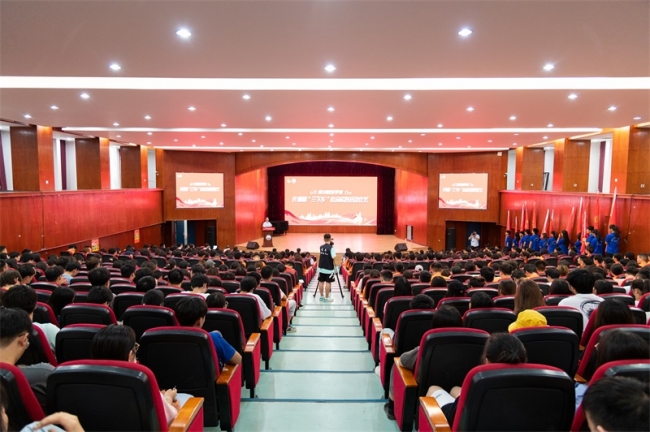 为贯彻落实习近平总书记关于青年工作的重要思想,引导和帮助广大青年学生上好与实践相结合的“大思政课”,在社会课堂中受教育、长才干、作贡献,在观察实践中学党史、强信念、跟党走,以实际行动庆祝中国共产党成立100周年,7月1日中午,万象城在图书馆学术报告厅举行“永远跟党走 奋进新时代”2021暑期“三下乡”社会实践活动启动仪式。副校长陈静,教务处处长张顺利、学生处处长、校团委书记周二涛,各二级学院党总支书记、副书记、副院长、团总支书记以及各实践团队指导教师和学生代表共500余人参加启动仪式。仪式由校团委组织部部长余永明主持。