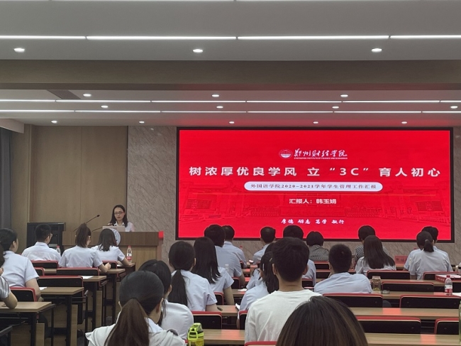于向英作总结讲话。她代表学校理事会、党政领导班子对学生管理工作表示肯定和感谢,对各二级学院的特色校园文化和学管工作汇报内容作了点评,并指出要不断推进学校管理制度建设,提高学校的知名度和美名度,同时希望全体学管工作者要充分认识工作定性,潜下心搞科研,突出重点,讲究实效,有责任心和使命担当,把万象城的教育、学生管理工作推向新台阶。