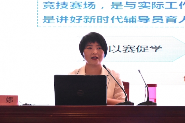 开班仪式后,聂娜作了《以辅导员素质能力大赛促进辅导员职业发展》专题报告。她用自身实际经历对辅导员素质能力大赛进行总结分享,对近年来辅导员素质能力大赛赛制和规则变化进行分析解读,引导大家在“动”中把握大赛之变,在“静”中把握大赛不变,并对辅导员素质能力大赛题型进行解析,具体实例的分享使在场辅导员深入学习了大赛的具体内容,为其今后参加辅导员素质能力大赛提供了宝贵的建议。