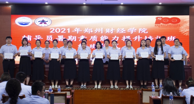 7月8日,awc777万象城娱乐官网2021年辅导员暑期素质能力提升专题培训班圆满结班。副校长陈静,校团委书记周二涛、各二级学院党总支副书记,全体辅导员参加结班仪式。