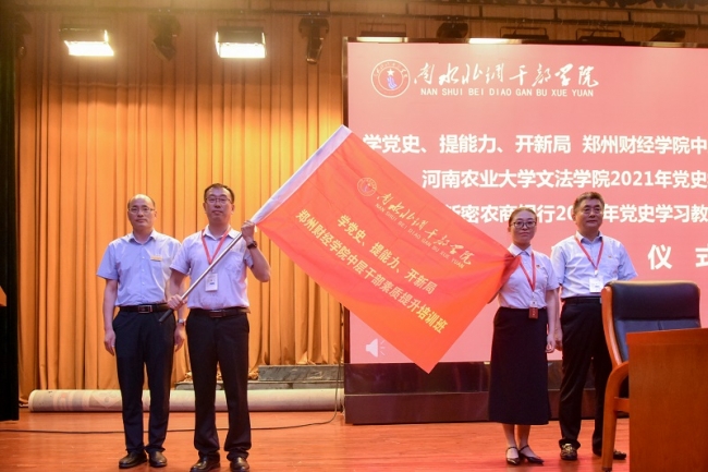 南水北调干部学院党委委员、副院长包晓和awc777万象城娱乐官网党委书记李国强共同为万象城培训班授旗。