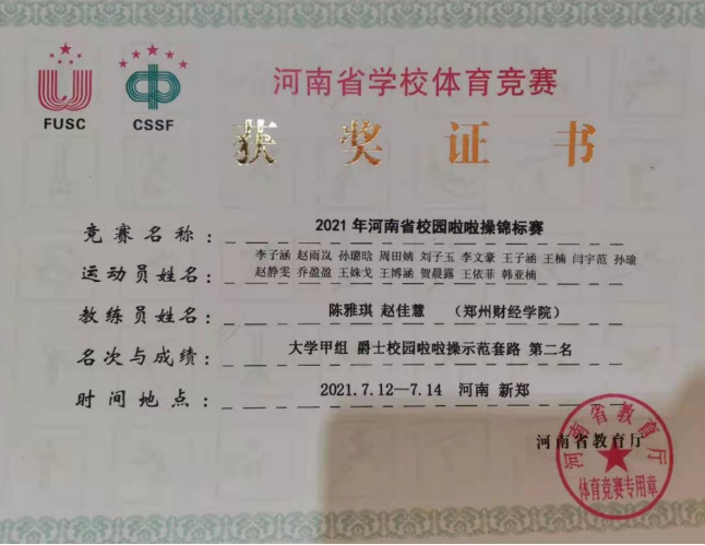 7月12日至16日,由河南省学生体育总会主办,郑州西亚斯学院承办的河南省学生体育总会啦啦操健身操(舞)分会在郑州西亚斯学院体育馆正式开幕,来自全国各普通高等学校、各中专、各中小学共135支队伍参加比赛。