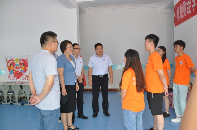 7月16日,副校长陈静带领校团委书记周二涛,艺术设计学院党总支书记张永一行来到艺术设计学院“艺起益行”暑期社会实践基地——郑州市惠济区厚德康复教育中心,看望慰问“艺起益行”社会实践团成员,并举行了艺术设计学院社会实践基地挂牌仪式。
