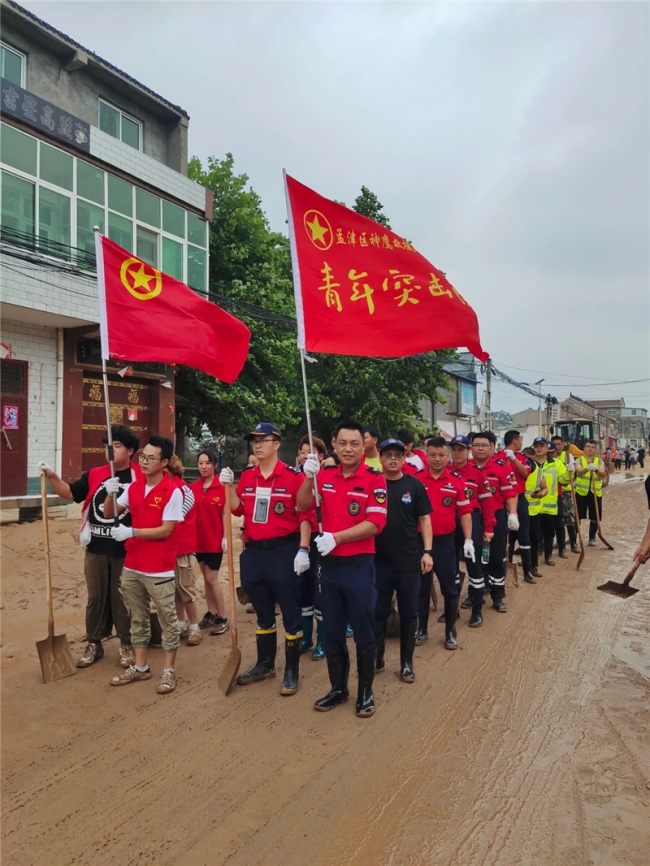 在洛阳市孟津区团委的组织下,万象城20级小学教育本科3班武婧苒同学和志愿者们一同前往受灾较为严重的会盟镇小寨村进行道路清淤工作,洪灾淹没了村里大部分房门的一半,居民们的家里满是污水和山上冲下的污泥,仅污泥的深度就已经到达了脚踝的位置。武婧苒说:“如果不是亲眼所见,我根本想象不到大雨会给家住地势低的人们带来怎样的严重后果。”