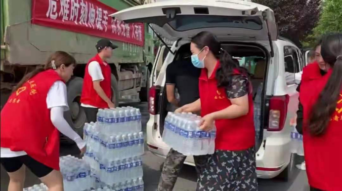 20级环艺2班王晓云在新乡市卫辉市参加汛期志愿工作。卫辉市连续特大暴雨引发了洪涝灾害,人民生命安全和财产遭受严重损失。她说:“一方有难,八方支援,全国各地捐赠的大批物资持续送往卫辉,从7月24日下午开始,我就在卫辉市镇国塔附近,和其他志愿者一起装卸物资,为帮助灾民尽一份微薄之力。面对生命呼唤,我们义无反顾。风雨来袭之际,我们同舟共济!迎洪水而上,我们用大爱托起生命之舟!”