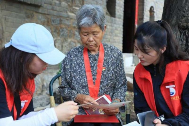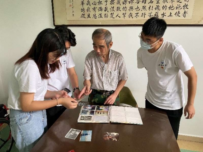 实践团成员聆听老党员讲述习近平总书记重要讲话精神