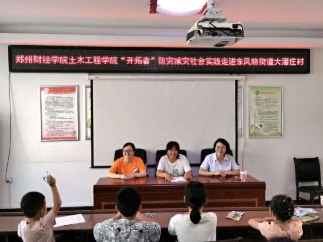 实践团队走进大潘庄村党群服务中心为当地小朋友上防灾减灾科普课