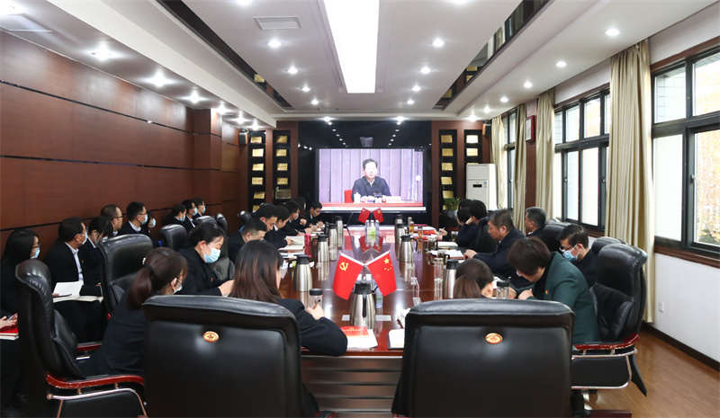 会议首先集体观看了学习贯彻党的十九届六中全会精神中央宣讲团宣讲报告会视频节选。11月22日,按照中央统一部署,学习贯彻党的十九届六中全会精神中央宣讲团宣讲报告会在郑州举行,省委书记楼阳生主持并讲话。中央宣讲团成员、中共中央政策研究室原副主任施芝鸿围绕学习党的十九届六中全会《决议》和习近平总书记重要讲话,对全会精神进行了集中阐释和系统讲解。