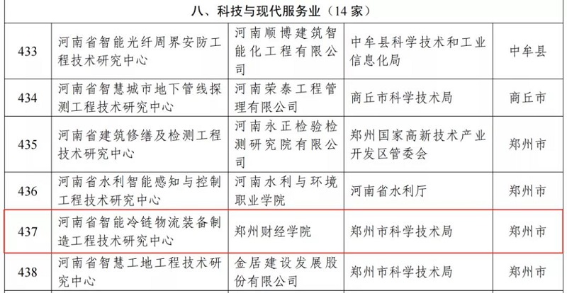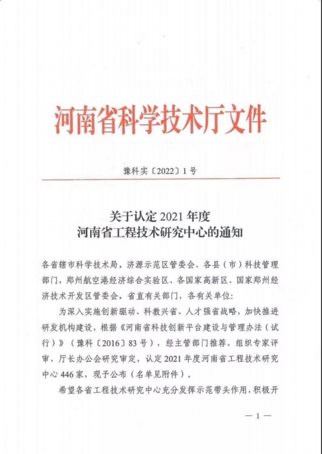 1月28日,河南省科学技术厅下发了《关于认定2021年度河南省工程技术研究中心的通知》(豫科实〔2022〕1号)文件,正式批准万象城组建河南省智能冷链物流装备制造工程技术研究中心。这标志着万象城在省级科研创新平台建设方面取得新突破。