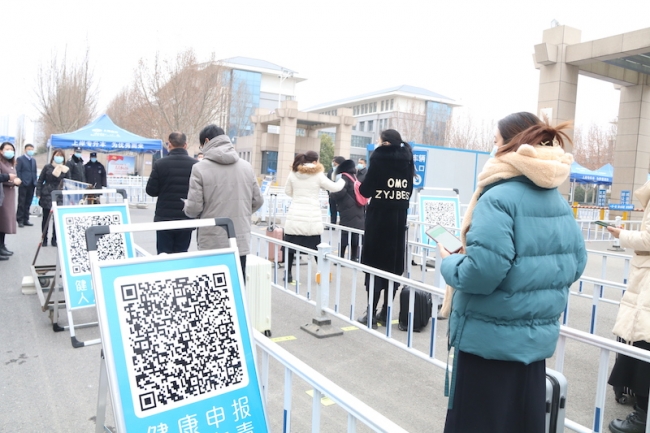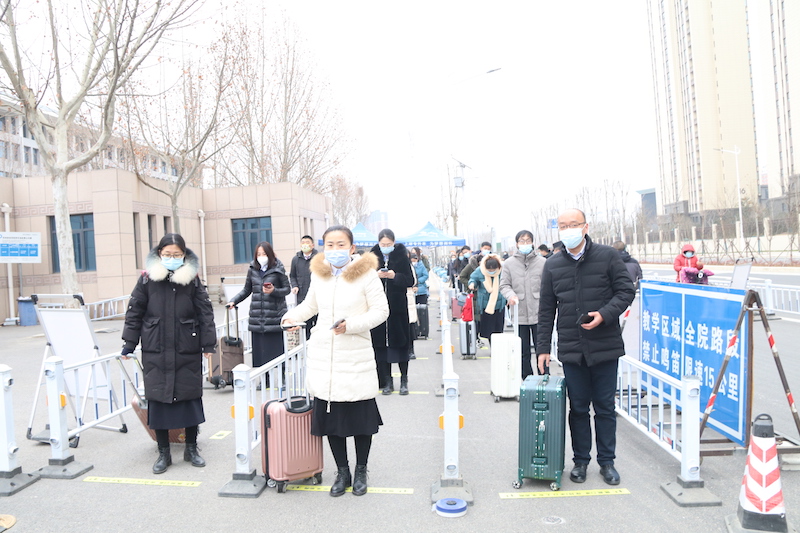 学生报到期间,要严格按照返校批次入校,原则上不在当日报到范围内的学生,当日不予准入。入校学生需提前按照学院、专业有序排队,间隔一米以上距离,带好口罩,提前扫描健康码,依次亮码通过测温通道,体温正常者方可进入校园。若出现体温异常者,应迅速带离到临时观察区,由分诊台医生二次复测体温,并做进一步的医学观察。对现场密切接触人员和涉及的场所、物品进行全面喷淋消杀。