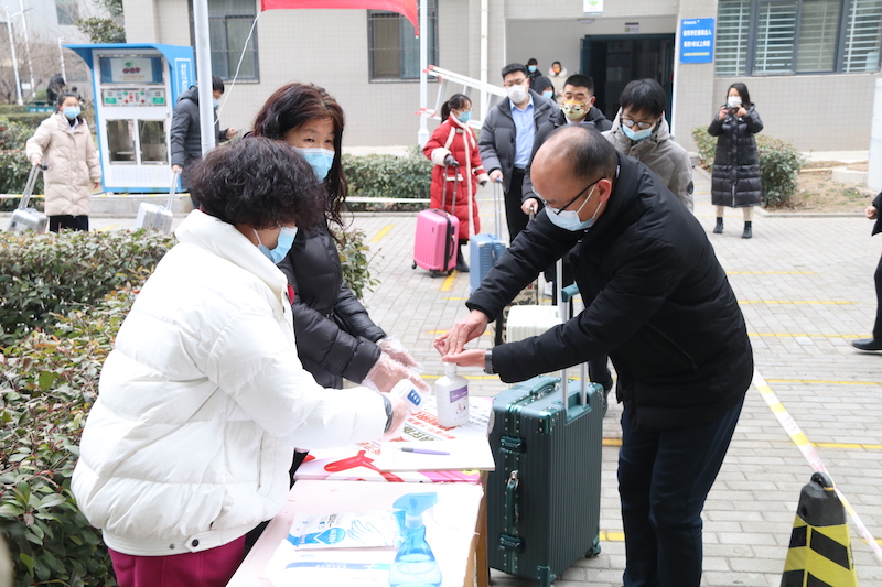 入宿舍前测量体温、手部消毒