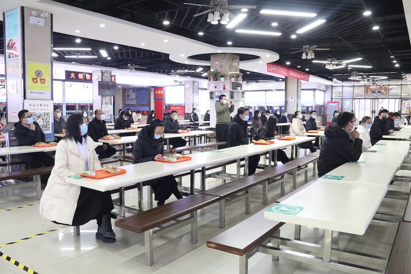 就餐时,师生需佩戴口罩,按照“七部洗手法”洗手后,在餐厅入口处有序排队等候体温检测。体温合格者进入餐厅,按照地面标识排队买餐,间隔一米以上,可堂食或外带。餐厅就餐按照座位标识,自带餐具,单人单桌,同向就餐,避免就餐人员相互交流。就餐完毕后迅速从出口处有序离开。