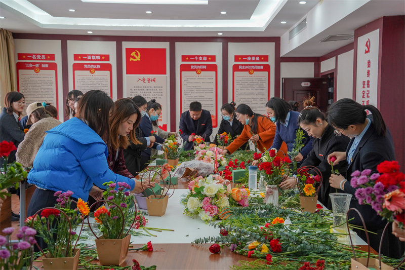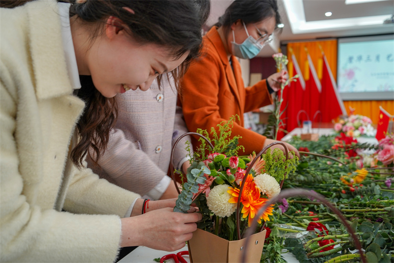 艺术设计学院分工会组织开展了“繁花三月、艺起美丽”女教职工花艺活动。在一朵朵芬芳的花朵中,该院女教职工们从艺术的审美角度,经过精心挑选、合理配色、高低穿插、修剪调整,创作出属于自己的一份作品和美丽。花艺作品中,有的诗情画意,有的火红喜庆,有的清新怡人,有的纯净典雅,充分展现了女性的勤劳、智慧与柔美。
