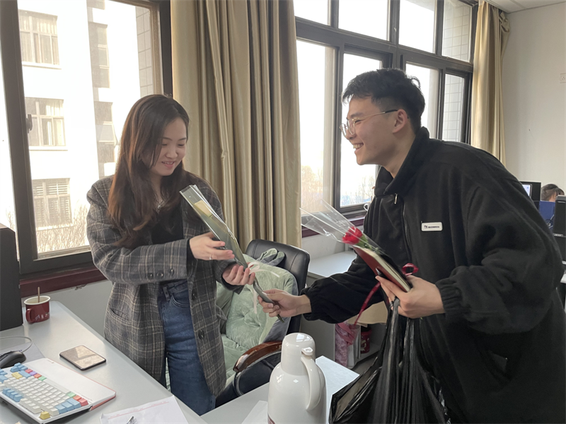 会计学院学生会精心准备,悄悄地为学院全体女教师准备了节日惊喜,他们手捧鲜花,来到教师办公室,为学院女教师送上了鲜花和祝福。老师们收到鲜花之后非常惊喜,心中满是感动。