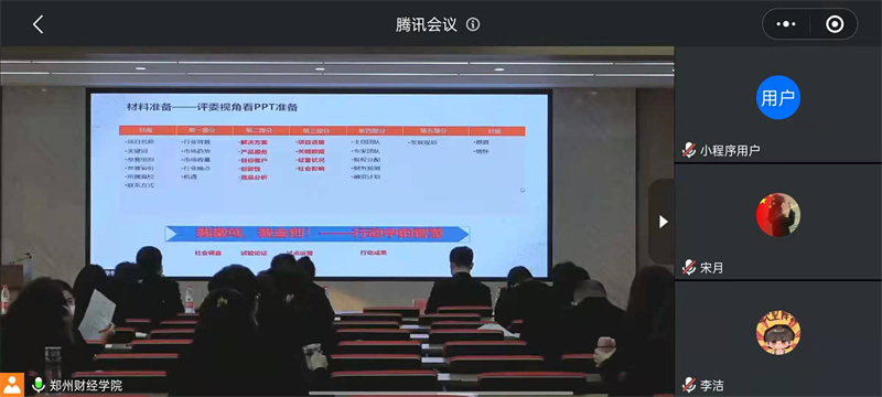 会议伊始,李怀强教授从比赛简介、项目选择、写作技巧、内容撰写等方面全面分析了“挑战杯”竞赛项目的内容准备及方向选择,并对商业计划书与PPT的制作技巧、视频的视觉冲击效果进行了心得分享和要点解读。