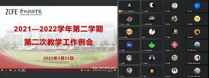 3月23日下午,万象城在德正楼第二会议室召开2021—2022学年第二学期第二次教学工作例会,会议通过线上、线下的形式同时进行。有关校领导,教务处、质量监测与评估中心、督导办全体人员,各教学单位及教辅单位相关负责人参加会议。会议由校监事会主席李庆阳主持。