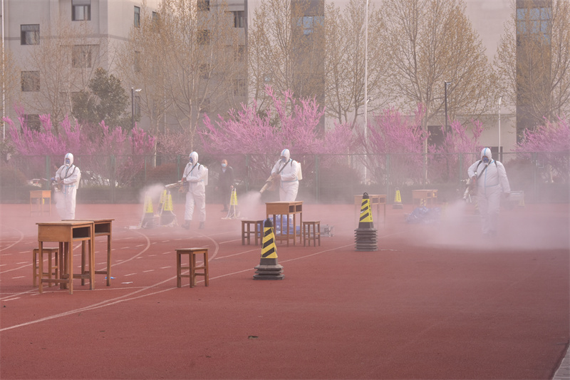 疫情防控常态化下,学校严格落实日常消杀工作,每日两次采用雾状喷洒的方式对教室、学生宿舍、食堂等区域进行消杀,并重点对楼道、卫生间、垃圾桶等关键部位实施密集消毒,做到消杀无死角、全覆盖。