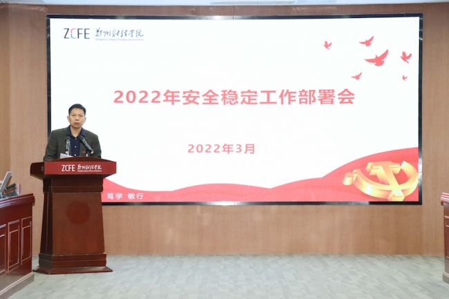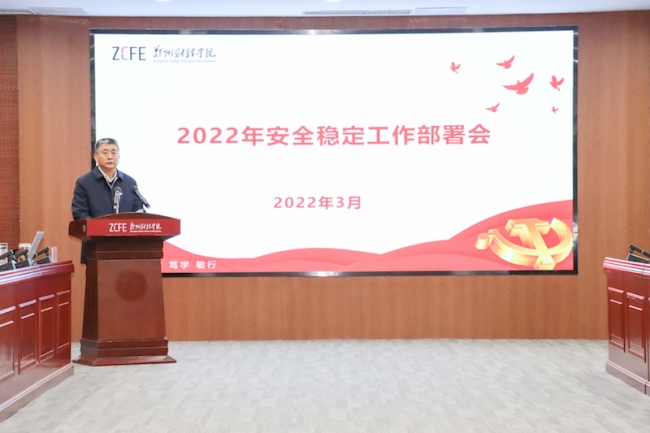 校长王能民指出,要坚决做好2022年安全稳定工作,从严从紧压实责任,做实做细校园疫情防控工作。认真贯彻落实习近平总书记关于疫情防控工作的重要指示精神,坚持人民至上,生命至上,全力保障师生生命安全和身体健康。要全力构建以师生为中心的大发展格局,打造精品校园文化,加强师生心理健康教育和网络安全教育,不断提升师生获得感幸福感。